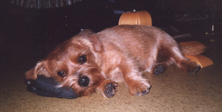 Doffen til høyre. Han bor hos fetteren til Sven i Oslo. Jeg liker han - unntatt når han prøver å sjekke ryggsekken til mor. Da blir jeg forbanna!!!